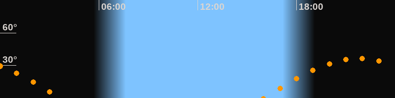 | Aufgang | 15:58 Uhr im Osten (αAz = 93,8°) |