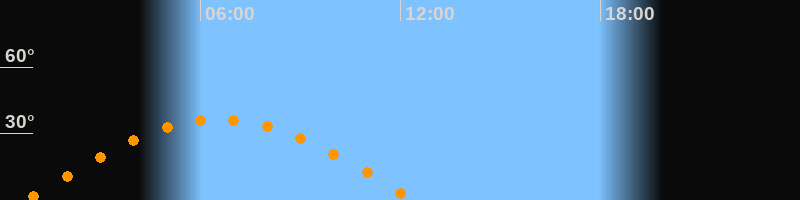| Höchster Stand (Kulmination) | 06:35 Uhr (h = 36,4°) |