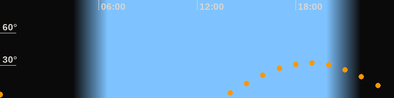 | Höchster Stand (Kulmination) | 18:54 Uhr (h = 32,4°) |