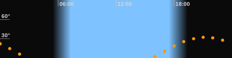 | Untergang | 02:44 Uhr im Westen (αAz = 259,7°) |