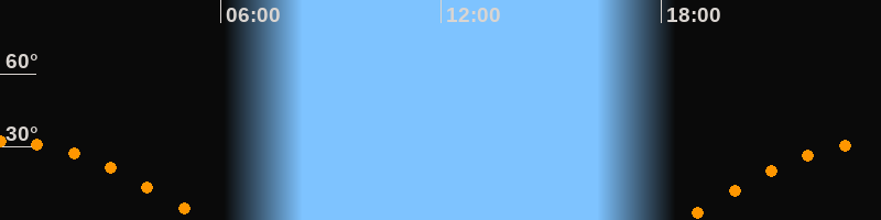 | Höchster Stand (Kulmination) | 00:03 Uhr (h = 32,4°) |