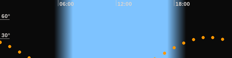 | Untergang | 03:06 Uhr im Westen (αAz = 259,7°) |