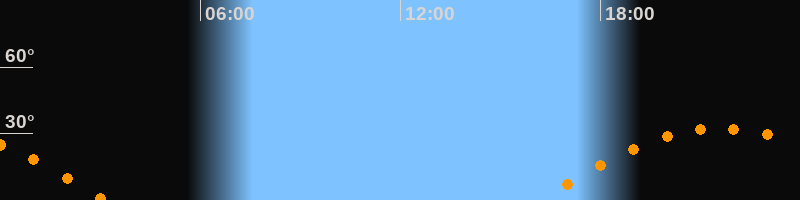 | Untergang | 03:10 Uhr im Westen (αAz = 259,7°) |