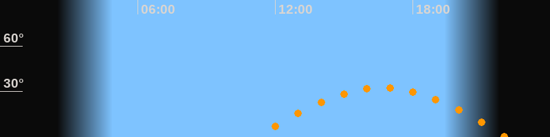 | Höchster Stand (Kulmination) | 16:39 Uhr (h = 32,4°) |