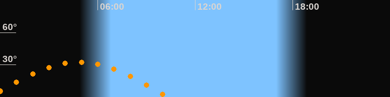 | Untergang | 10:19 Uhr im Westen (αAz = 259,7°) |