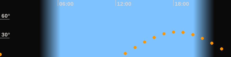| Höchster Stand (Kulmination) | 18:23 Uhr (h = 39,7°) |