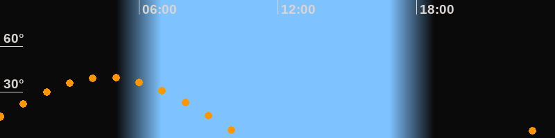 | Höchster Stand (Kulmination) | 04:33 Uhr (h = 39,7°) |