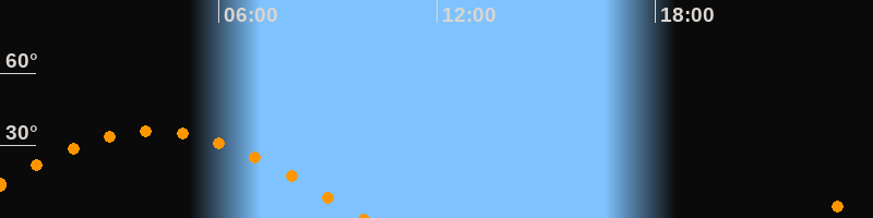 | Aufgang | 22:23 Uhr im Osten (αAz = 94,7°) |