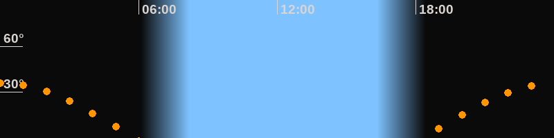 | Aufgang | 18:15 Uhr im Osten (αAz = 94,7°) |