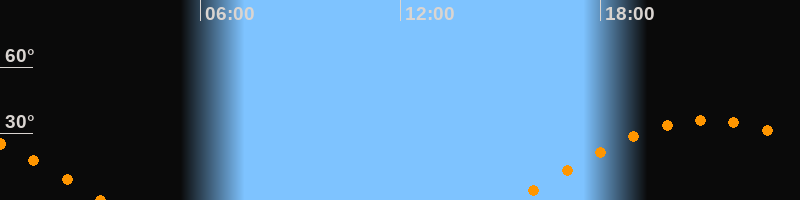 | Aufgang | 15:28 Uhr im Osten (αAz = 94,7°) |
