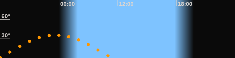 | Höchster Stand (Kulmination) | 05:40 Uhr (h = 35,9°) |