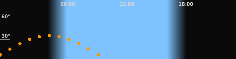 | Untergang | 10:47 Uhr im Westen (αAz = 265,3°) |