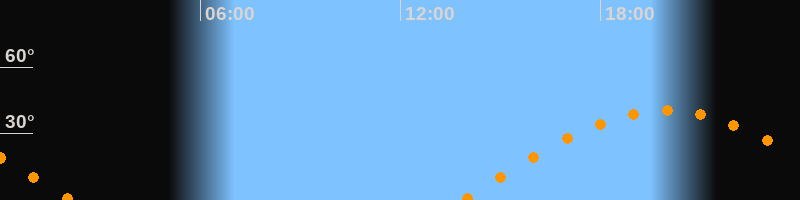 | Untergang | 02:09 Uhr im Westen (αAz = 272,3°) |