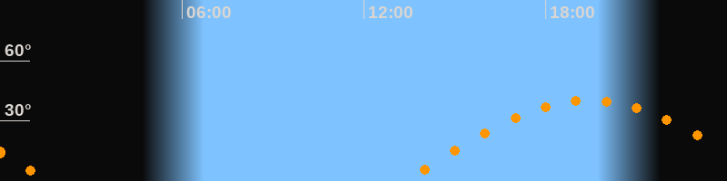 | Aufgang | 13:18 Uhr im Osten (αAz = 87,7°) |