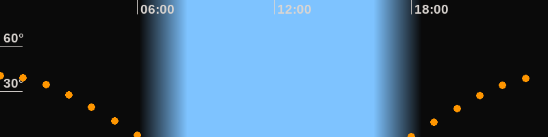 | Untergang | 06:12 Uhr im Westen (αAz = 272,3°) |