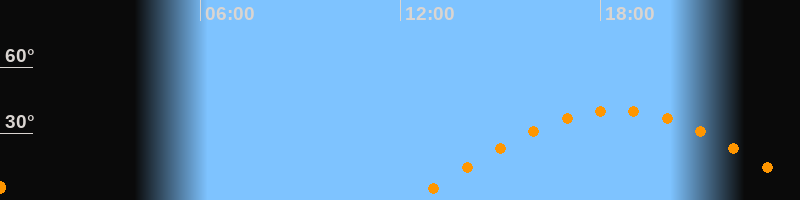| Höchster Stand (Kulmination) | 18:30 Uhr (h = 40,3°) |