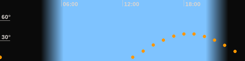 | Höchster Stand (Kulmination) | 18:28 Uhr (h = 40,3°) |