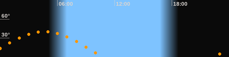 | Aufgang | 22:26 Uhr im Osten (αAz = 87,7°) |