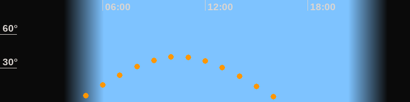 | Höchster Stand (Kulmination) | 10:25 Uhr (h = 40,3°) |
