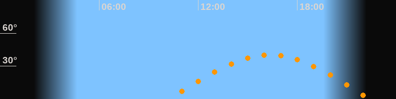 | Höchster Stand (Kulmination) | 16:19 Uhr (h = 40,3°) |