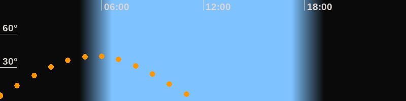 | Höchster Stand (Kulmination) | 05:34 Uhr (h = 40,3°) |