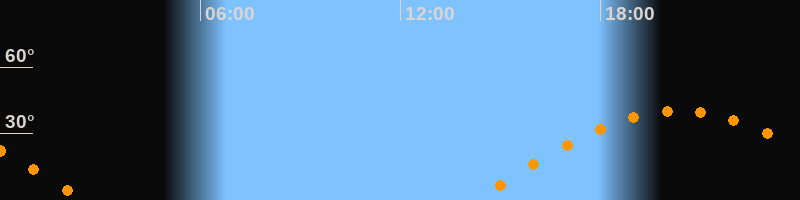 | Aufgang | 14:12 Uhr im Osten (αAz = 87,7°) |