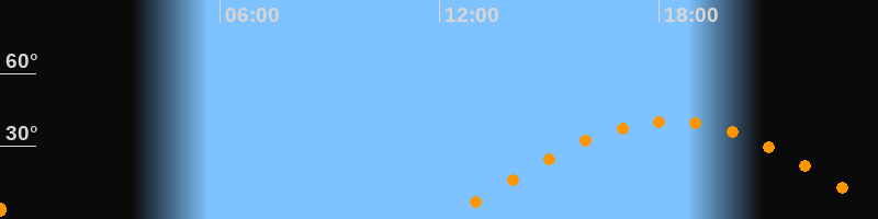 | Höchster Stand (Kulmination) | 18:19 Uhr (h = 40,3°) |