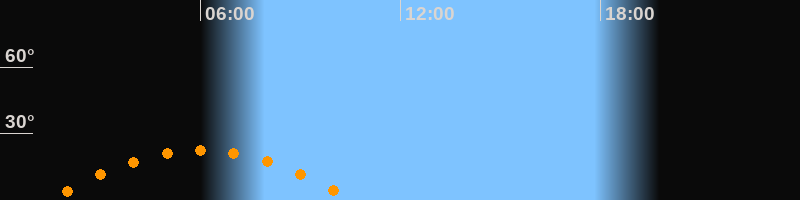 | Höchster Stand (Kulmination) | 06:01 Uhr (h = 22,4°) |