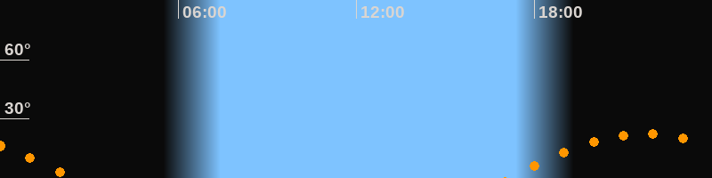 | Untergang | 02:25 Uhr im Südwesten (αAz = 243,5°) |