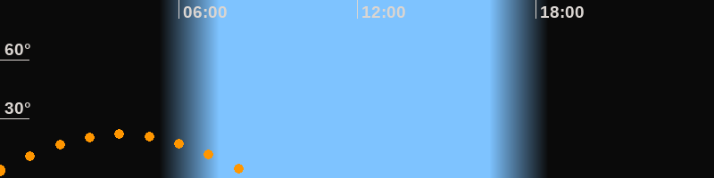 | Aufgang | 23:24 Uhr im Südosten (αAz = 116,5°) |