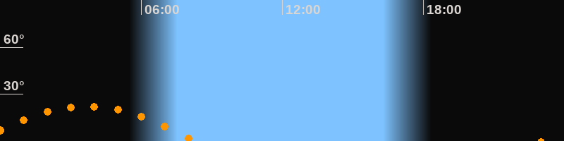 | Untergang | 08:16 Uhr im Südwesten (αAz = 243,5°) |