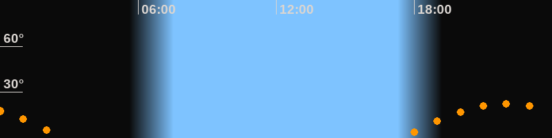 | Aufgang | 17:26 Uhr im Südosten (αAz = 116,5°) |