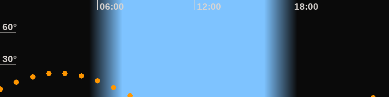 | Untergang | 08:13 Uhr im Südwesten (αAz = 243,5°) |
