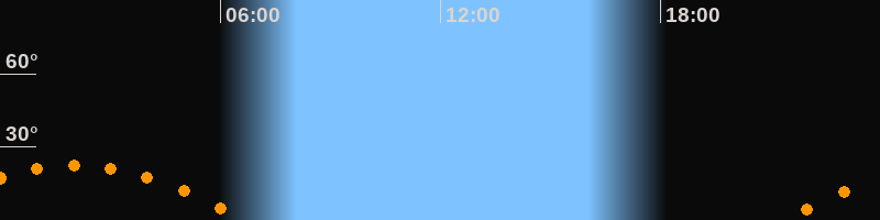 | Untergang | 06:39 Uhr im Südwesten (αAz = 243,5°) |