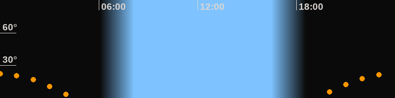 | Aufgang | 19:13 Uhr im Südosten (αAz = 116,5°) |