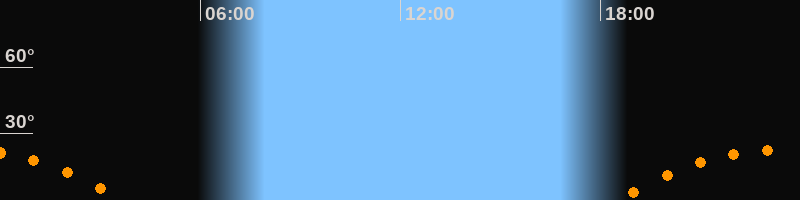 | Aufgang | 18:28 Uhr im Südosten (αAz = 116,5°) |
