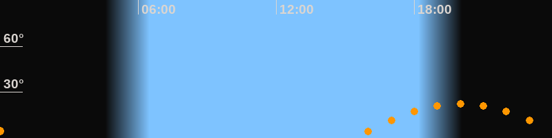 | Aufgang | 15:23 Uhr im Südosten (αAz = 116,5°) |