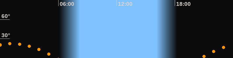 | Untergang | 05:51 Uhr im Südwesten (αAz = 243,5°) |