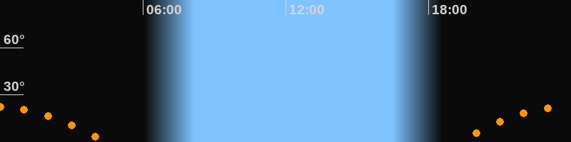 | Untergang | 04:28 Uhr im Südwesten (αAz = 243,5°) |