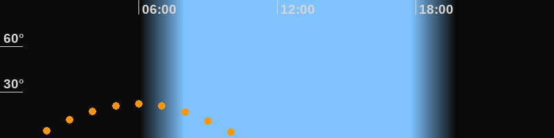 | Höchster Stand (Kulmination) | 05:56 Uhr (h = 22,4°) |