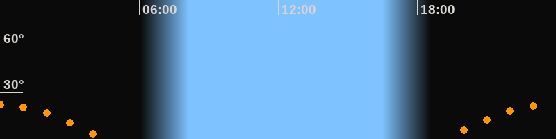 | Untergang | 04:29 Uhr im Südwesten (αAz = 243,5°) |