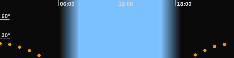 | Aufgang | 19:18 Uhr im Südosten (αAz = 116,5°) |