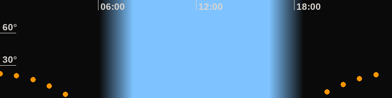 | Untergang | 04:30 Uhr im Südwesten (αAz = 243,5°) |