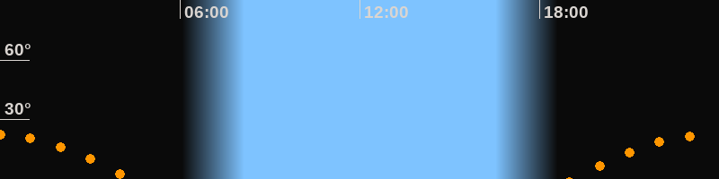 | Untergang | 04:22 Uhr im Südwesten (αAz = 243,5°) |