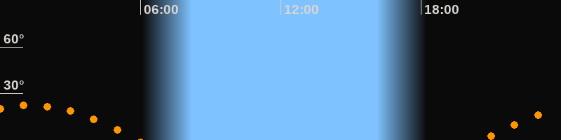 | Untergang | 05:53 Uhr im Südwesten (αAz = 243,5°) |