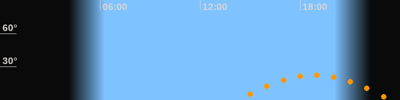 | Höchster Stand (Kulmination) | 18:51 Uhr (h = 22,4°) |