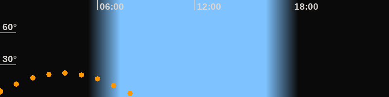 | Untergang | 08:30 Uhr im Südwesten (αAz = 243,5°) |