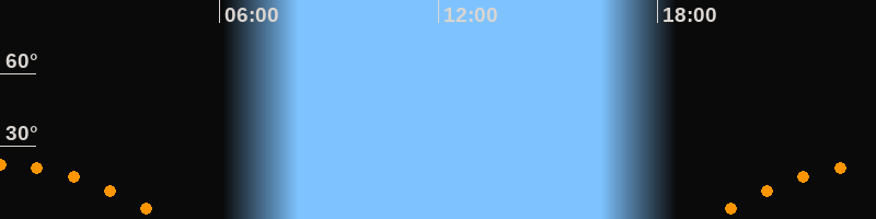 | Untergang | 04:38 Uhr im Südwesten (αAz = 243,5°) |