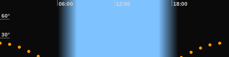 | Untergang | 04:14 Uhr im Südwesten (αAz = 243,5°) |