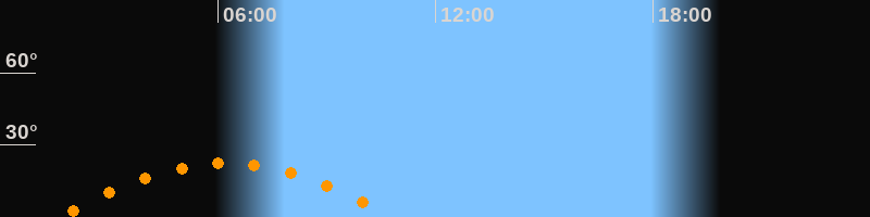 | Höchster Stand (Kulmination) | 06:13 Uhr (h = 22,4°) |